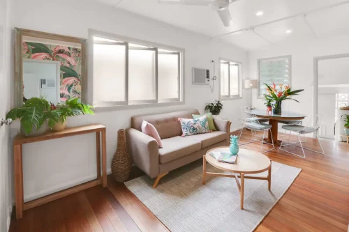 Featuring air-conditioned accommodation with a patio, Tropicana Bungalow - Retro Getaway is located in Cairns North. This property offers access to a balcony, free private parking and free WiFi. The property is non-smoking and is set 1.9 km from Cairns Station. The spacious holiday home features 2 bedrooms, a TV with streaming services, a fully equipped kitchen with a dishwasher and an oven, a washing machine, and 1 bathroom with a walk-in shower. Towels and bed linen are provided in the holiday home. The property has an outdoor dining area. Guests can also relax in the garden. Cairns Convention Centre is 3.2 km from the holiday home, while The Cairns Civic Theater is 2 km away. The nearest airport is Cairns, 6 km from Tropicana Bungalow - Retro Getaway, and the property offers a paid airport shuttle service.