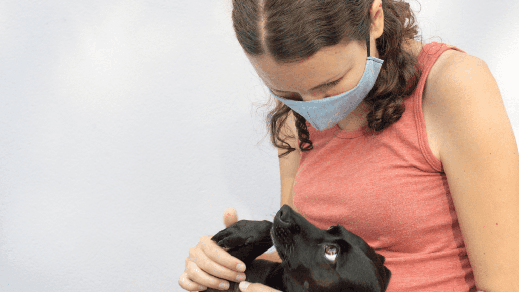 So, if you’re sick with COVID-19 and have a dog, especially if you live with other people and have a lot of the virus, it’s important to be careful when you’re around them. This means avoiding close contact and wearing protection, like a mask, to keep your pet safe [4].